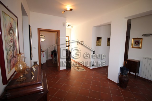 La villa immersa in un contesto paesaggistico mozzafiato, inserita all'interno di un ampio lotto di terreno di circa 1700 mq comprensivi di piazzali che circondano l'intera proprietą, dispone di un comodo magazzino al piano terra di circa 180 mq e doppio ingresso con cancelli automatici.